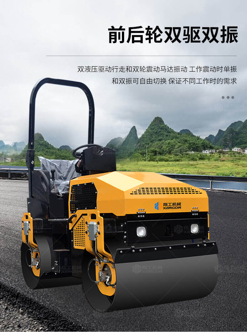 采用進口液壓系統(tǒng),雙驅雙振,前后輪可單獨調節(jié)振動,亦可同時振動。液壓轉向,液壓驅動,液壓行走,液壓振動。進口英國鉑金斯柴油機三缸水冷四沖程,動力強勁,性能穩(wěn)定。超快速度一小時可達12千米,無極變速。壓土,碎石,壓瀝青,壓回填土效果超乎想象。