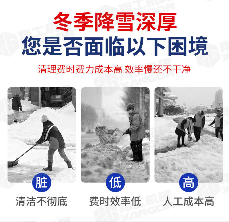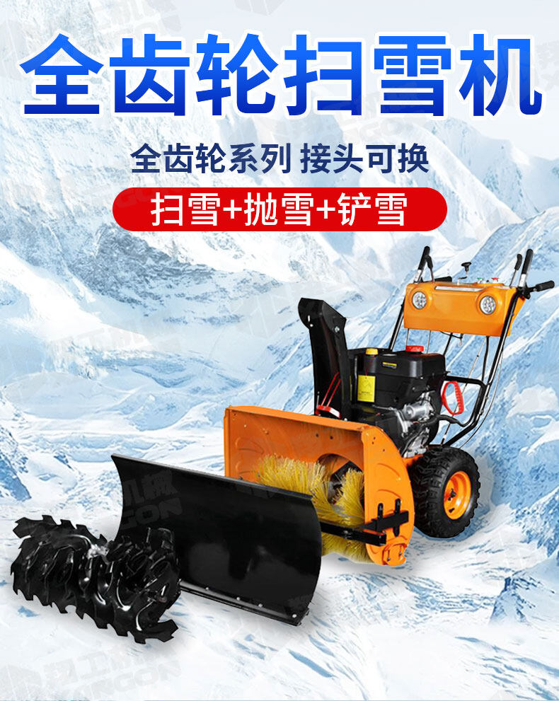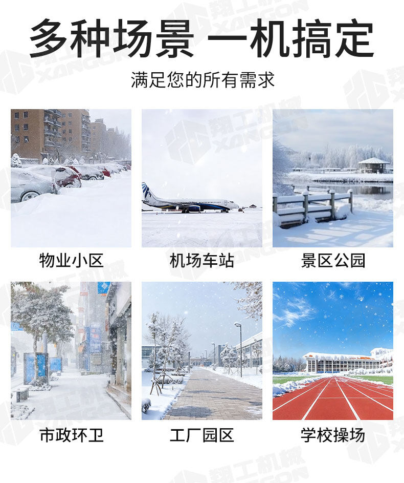 多功能掃雪車由中型卡車或重型卡車、四缸汽車發(fā)動機(jī)、吸雪管、鼓風(fēng)機(jī)、排雪管、吸雪口、液壓升降裝置、旋轉(zhuǎn)式清掃刷、清掃刷連桿、固定架、清掃刷液壓升降裝置組成。