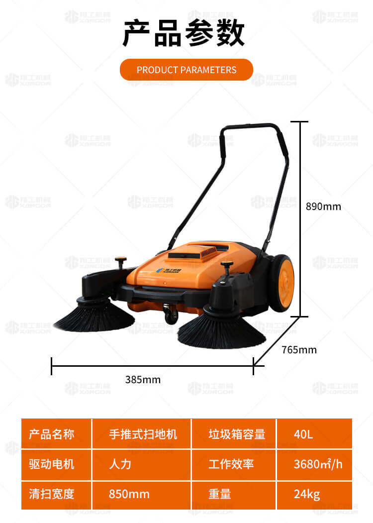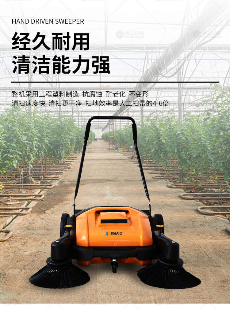 手推式掃地機能清潔房屋周邊范圍:包括小路,公路,車道和院子,能比用普通的掃把和簸箕節(jié)省5倍的時間,清掃時垃圾被迅速的收集到塵箱,簡單、快速、干凈。