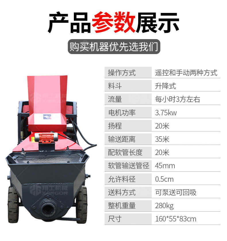 商品預(yù)拌砂漿,石膏砂漿,高標號自拌砂漿,高強無收縮灌漿料,自流本機器采用成熟液壓推進技術(shù)、泵車原理,革命性的采用斜體升降式布局,模塊化構(gòu)件,且電機功率小,揚程高、體積小、重量輕等顯著優(yōu)點,機器標配全軟管,方便移動易施工,改善了以往砂漿泵的體積笨重、磨損快、難維護的缺點。