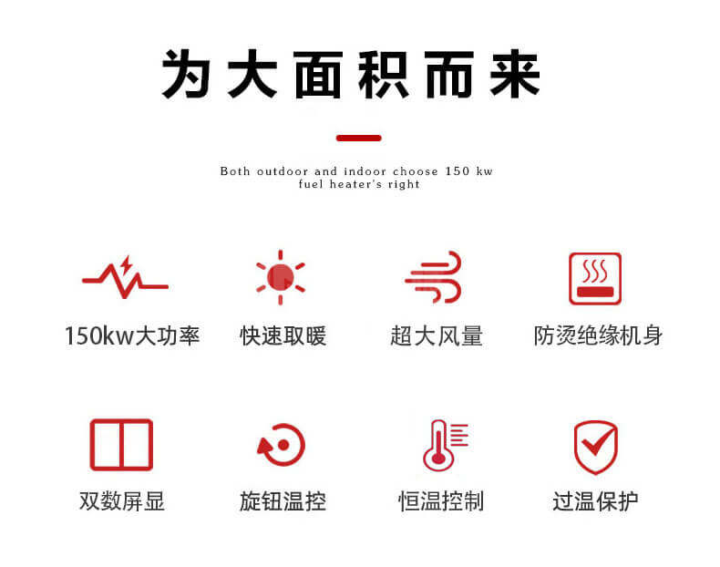 不管是室外還是室內(nèi),只要是需要提升溫度,選擇150KW燃油款暖風(fēng)機(jī)就沒錯(cuò)了,工業(yè)燃油柴油暖風(fēng)機(jī)您是通過(guò)柴油燃燒散發(fā)大量的熱,通過(guò)電機(jī)工作,風(fēng)扇把熱量給吹出來(lái),持續(xù)升溫,并且 能自動(dòng)保持恒溫狀態(tài)!適合養(yǎng)殖,展會(huì),車間等大面積取暖場(chǎng)所。
