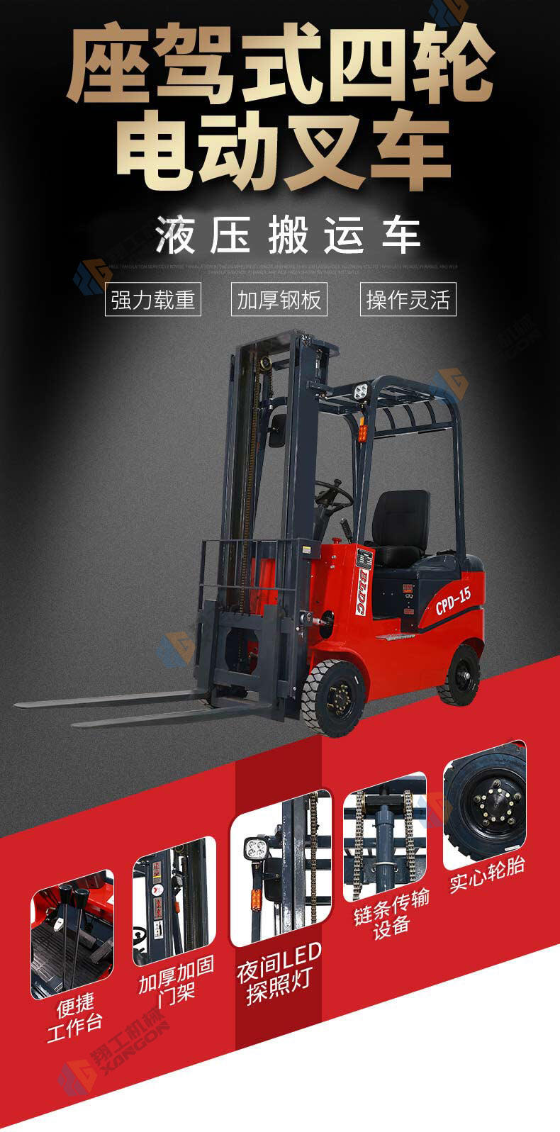 1噸2噸座駕式四輪電動(dòng)叉車液壓搬運(yùn)堆高車全電動(dòng)電瓶叉車