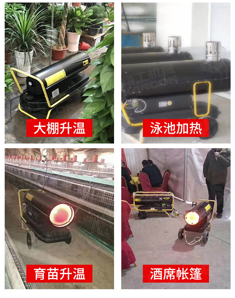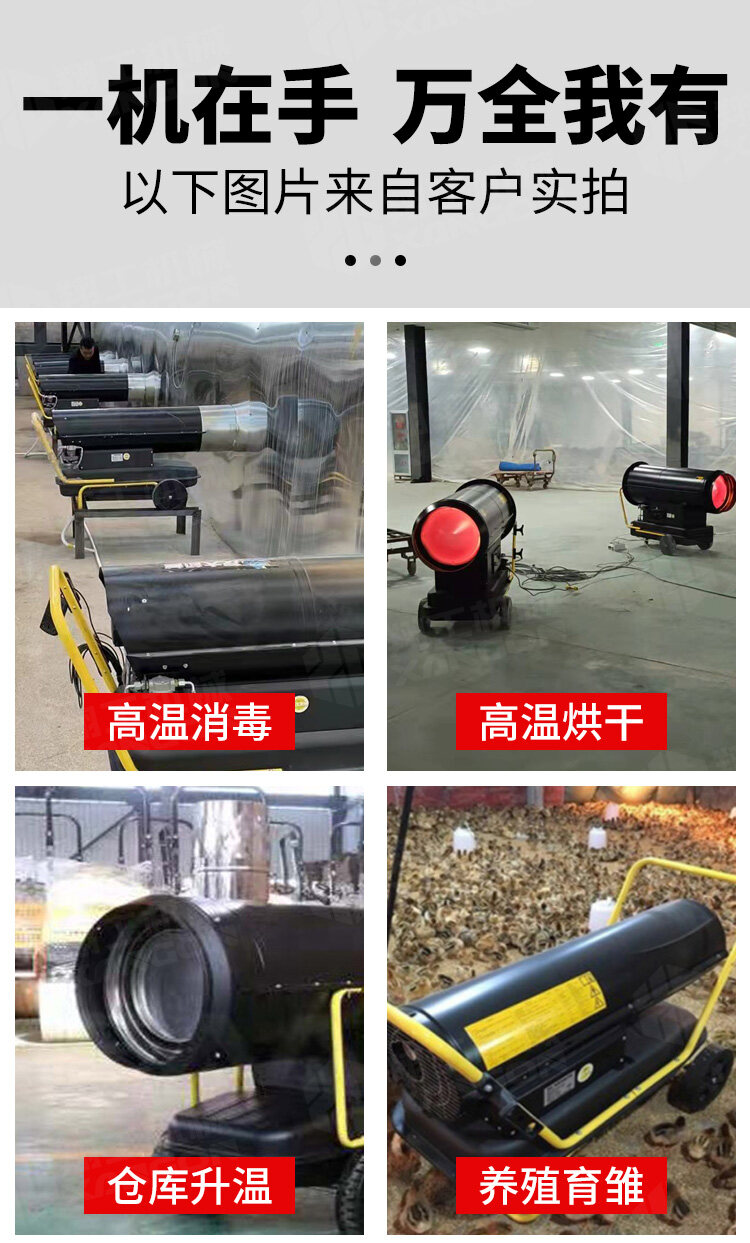 用于大場(chǎng)景消毒房高溫殺菌,畜牧養(yǎng)殖業(yè)取暖,蔬果大棚取暖,建筑烘干取暖,木材烘干等;