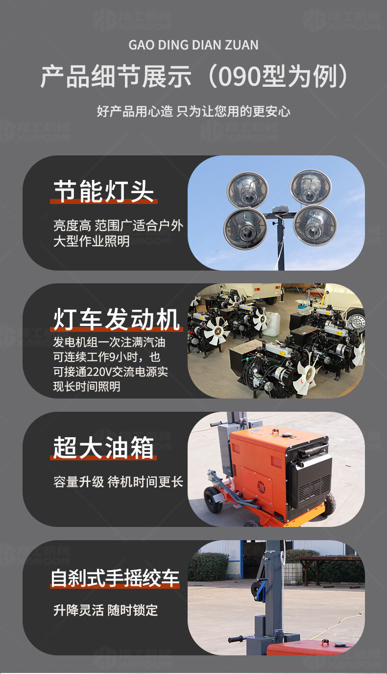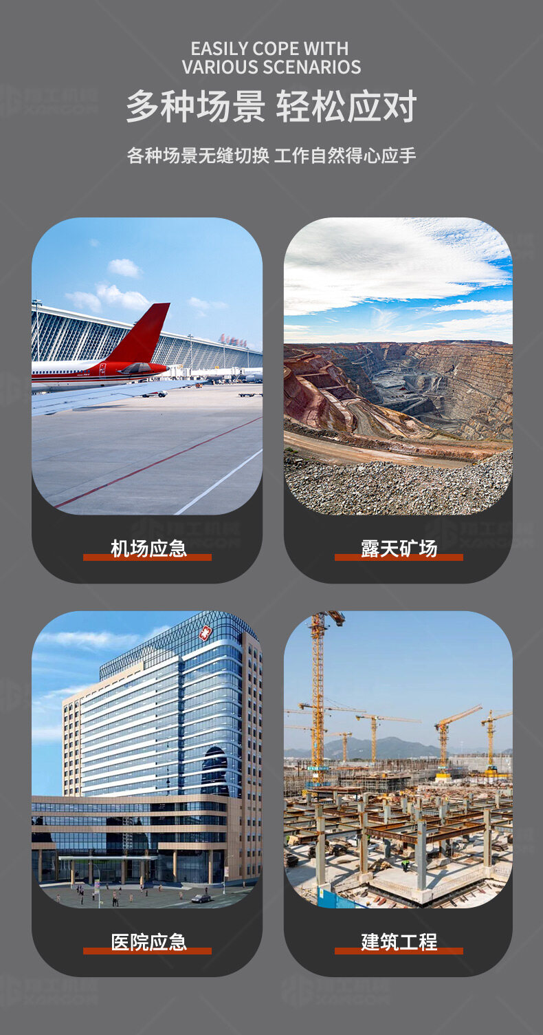 090型工程照明車用于體育場館、機(jī)場、碼頭等大型公共場所, 公路、鐵路、電力等緊急搶險現(xiàn)場,露天采礦現(xiàn)場, 以及防洪防汛、搶險救災(zāi)現(xiàn)場等其它需要緊急備用光源、電源的場合