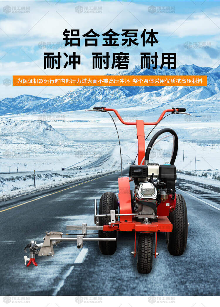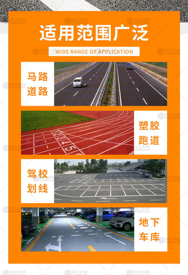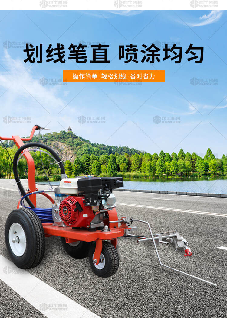 小型手推式道路劃線機(jī)是一種在道路、停車場(chǎng)、廣場(chǎng)和跑道等平整地面上劃出不同約束、指引和警示等規(guī)則限制標(biāo)志的路面施工機(jī)械。最常見的就是在馬路上劃斑馬線,在路上劃車庫線、停車線等等應(yīng)用于小型工程、短途施工,活動(dòng)方便,靈活操作。 道路劃線機(jī)有冷噴式和熱熔式兩大類,冷噴式操作方便,施工快捷,可連續(xù)快速施工,越來越受到用戶青睞。熱熔式要帶上熱熔高溫爐等諸多輔助設(shè)施,施工時(shí)要間歇地從熱熔高溫爐取料,施工速度很慢,操作便捷性不夠且效率低,但一次成膜較厚。目前,比較常用的是冷噴手推式劃線機(jī),它可運(yùn)用于一般公路中小工程,運(yùn)用于廠區(qū)或地下室小工程劃線施工。