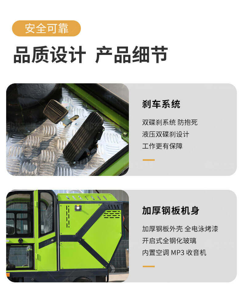 全封閉五刷加強版掃地車它的使用大大解放了勞動力,其作業(yè)能力強,作業(yè)效率高。翔工機械重視研發(fā),不斷的創(chuàng)新,不斷的提高產(chǎn)品質(zhì)量,完善性能,為大家提供質(zhì)優(yōu)價廉的產(chǎn)品