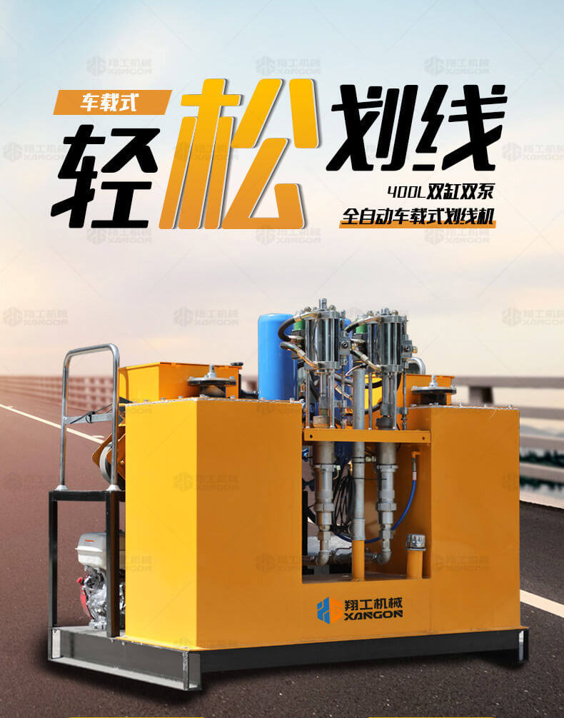 400L雙缸雙泵全自動車載式劃線機是我公司生產(chǎn)的針對高速公路、市政道路省道國道等大工程量的交通標(biāo)線施工的高效畫線設(shè)備。