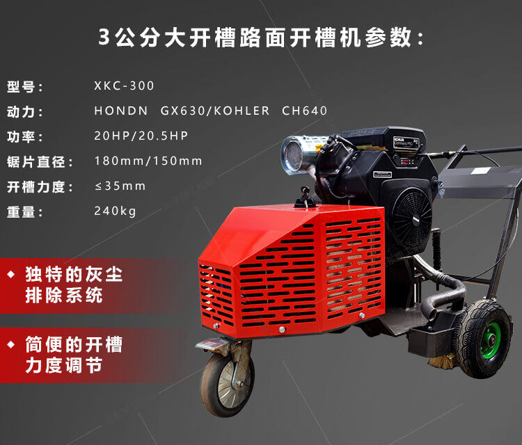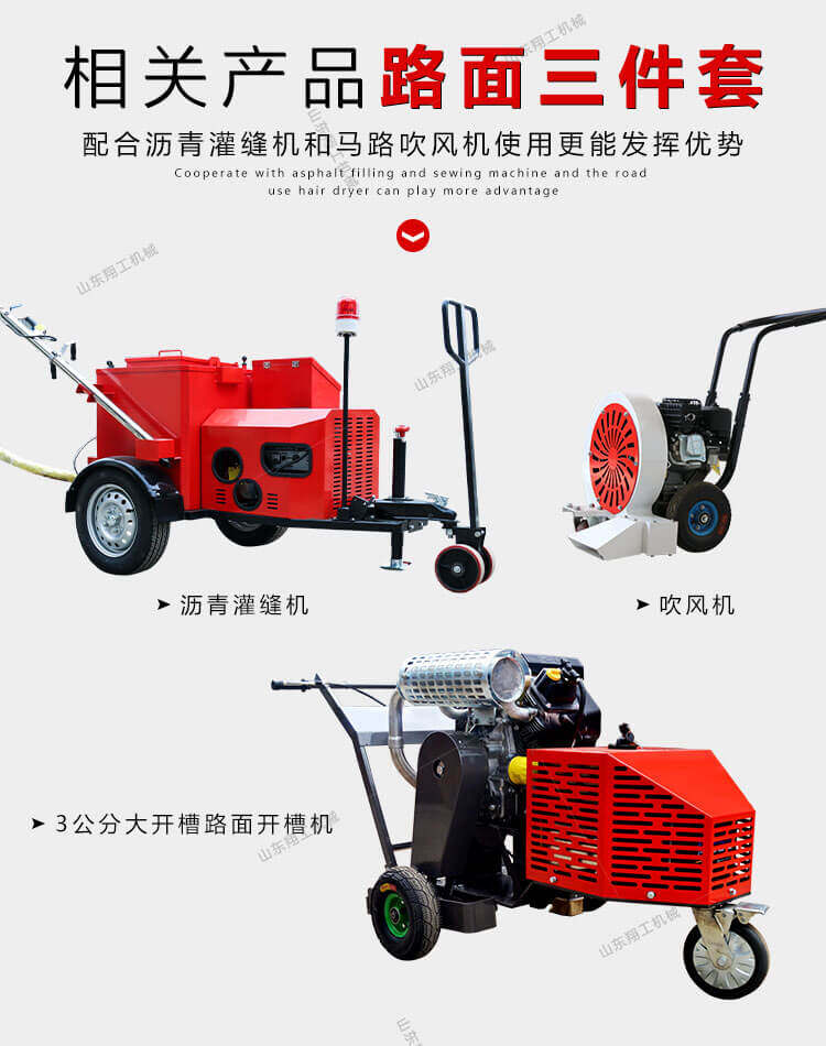 路面開槽機(jī)適用于瀝青路面灌縫修補(bǔ)前的裂縫打?qū)挕T撛O(shè)備具有使用方便,擴(kuò)縫速度快,刀片使用壽命長,擴(kuò)縫寬度可調(diào)等優(yōu)點(diǎn)。