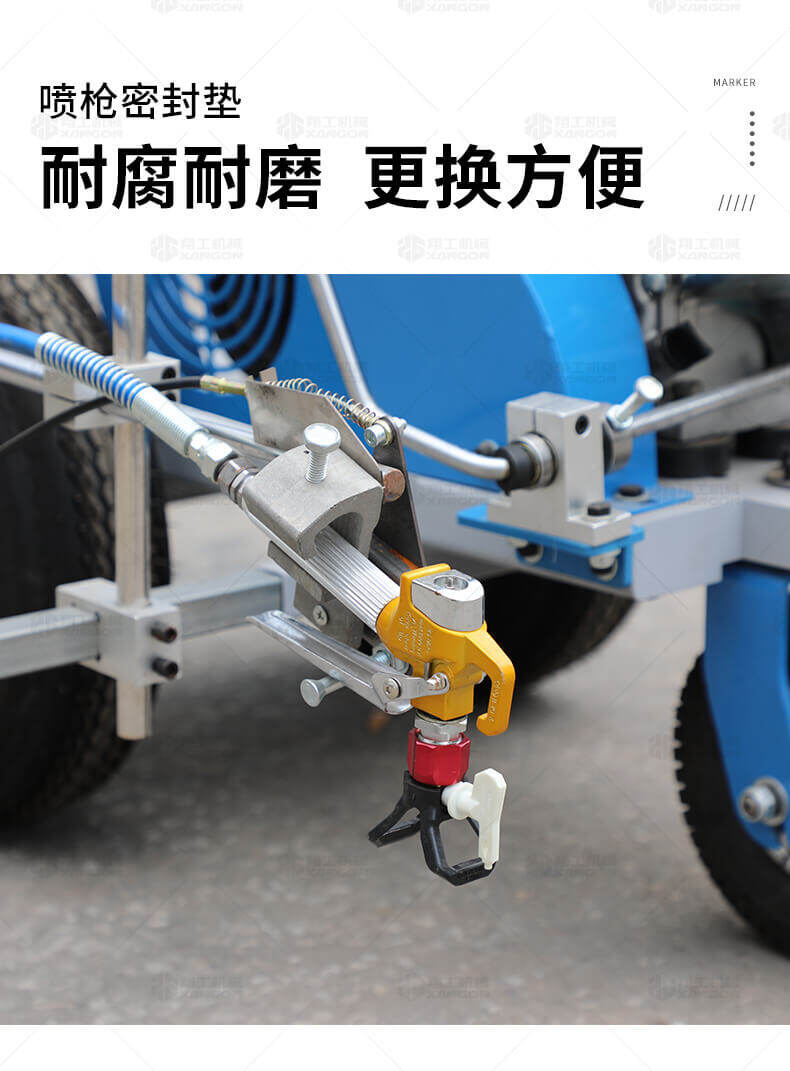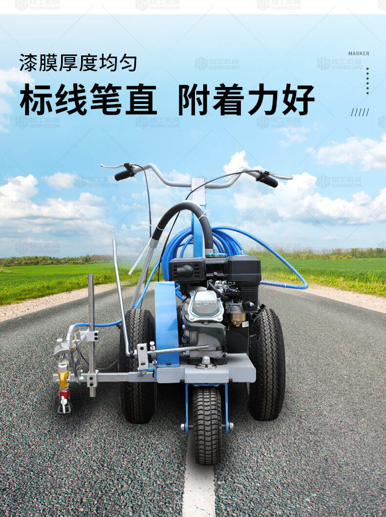 主要用于公路、市區(qū)、停車場、機(jī)場等涂劃直線、虛線、曲線、文字、箭頭等。具有劃線效果好、速度快、效率高、適用范圍廣、使用方便等優(yōu)點(diǎn)。