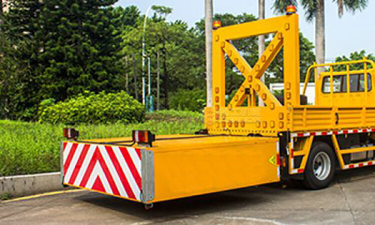 應用于道路養(yǎng)護施工作業(yè)、清掃保潔、灑水、綠化修剪、路面事故巡查等工況的安全防護。置于道路車輛、設備后方,在發(fā)生追尾事故中充當肇事車輛和施工作業(yè)人員或設備的緩沖區(qū)域,降低對人員的傷害。