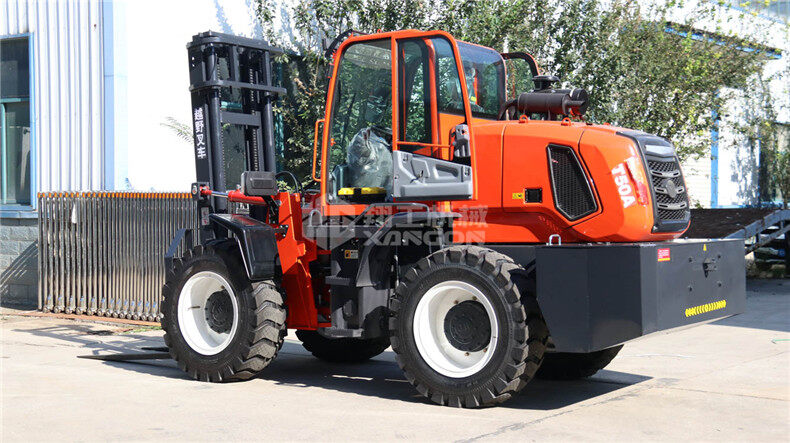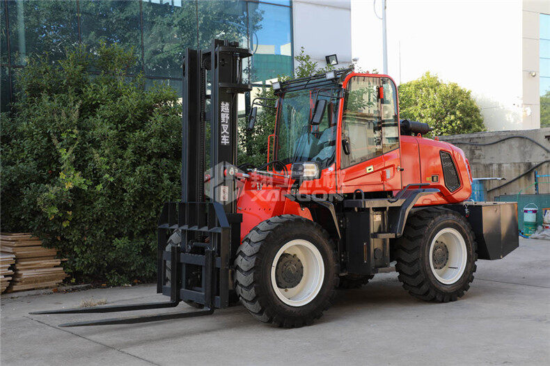 5.越野叉車發(fā)動機功率大,采用全輪驅動和越野輪胎。