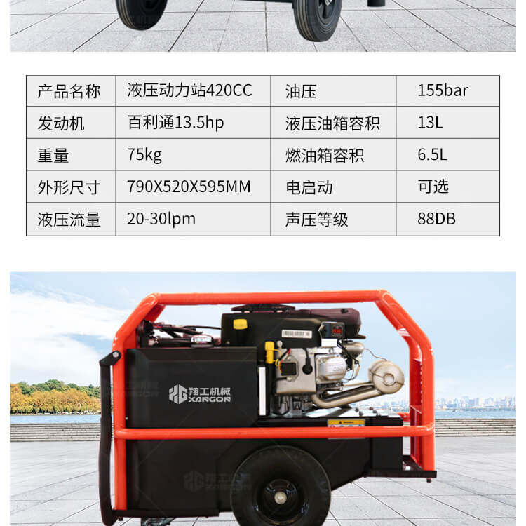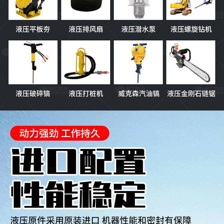 液壓動力站可連接多種液壓工具,液壓渣漿泵,液壓破碎鎬等其他液壓設備。