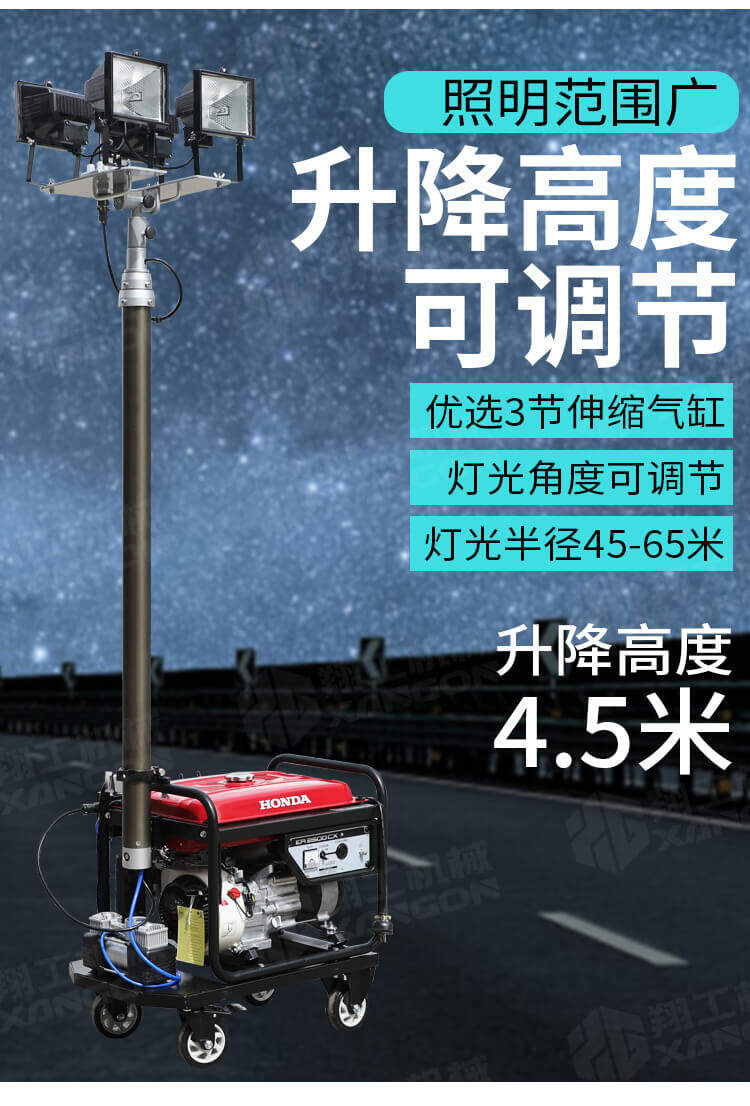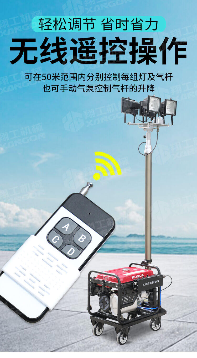 全方位升降工作燈適用于鐵路、電力、公安、消防、石油、石化等各種大型施工作業(yè)、事故搶修、搶險救災(zāi)等工作現(xiàn)場對大面積高亮度照明的需要。