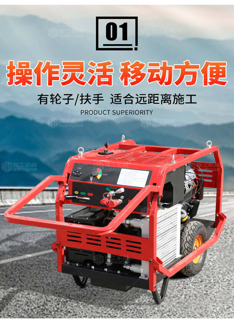 液壓動(dòng)力站采用先進(jìn)的技術(shù),可提供汽油或柴油風(fēng)冷式內(nèi)燃發(fā)動(dòng)機(jī),燃燒效率高,重量輕,堅(jiān)固耐用,使用壽命長,且不用擔(dān)心發(fā)動(dòng)機(jī)過載。