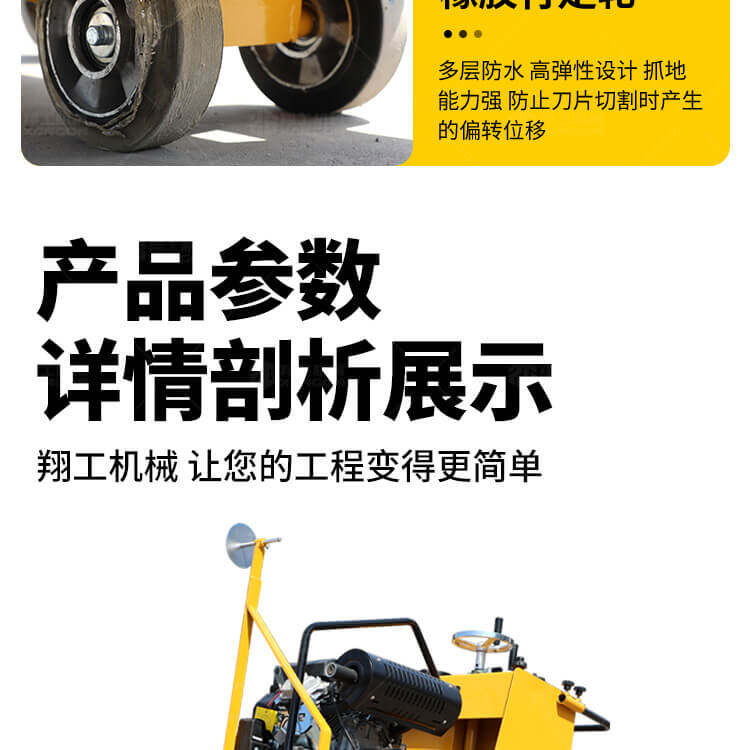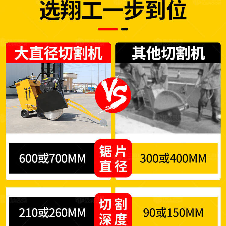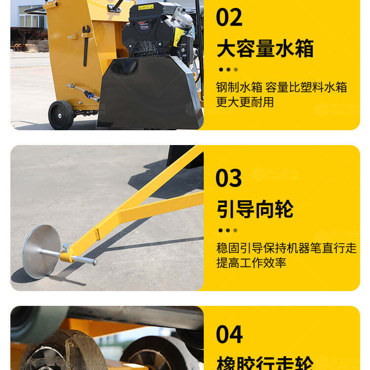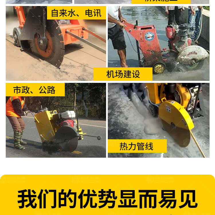 大鋸片大直經(jīng)馬路切割機自帶水源,降塵降溫,刀片使用壽命長。