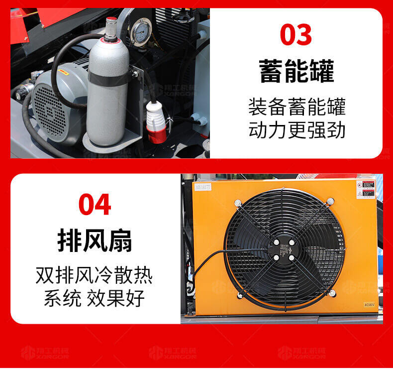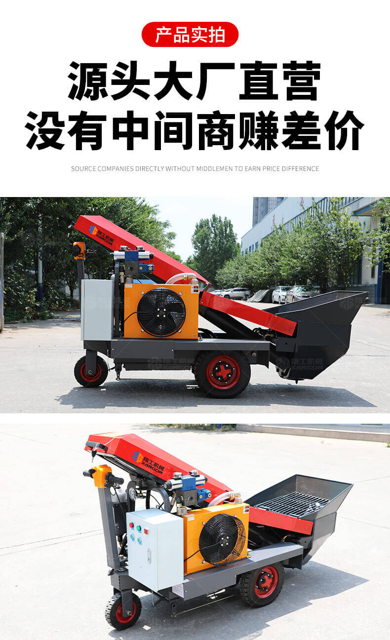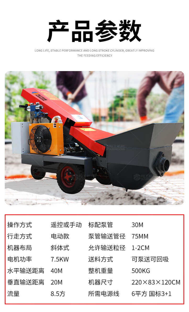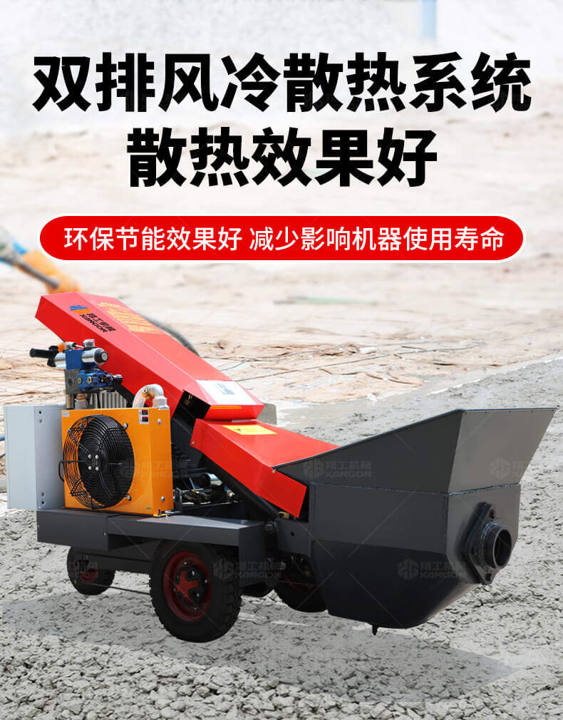 采用電動(dòng)行走底盤,斜體式布局升降料斗,采用雙排風(fēng)冷散熱系統(tǒng)散熱效果更好,液壓系統(tǒng)采用國內(nèi)知名廠商葉片泵,故障率低,壽命更長,性能更穩(wěn)定,超長行程料缸大大提高了輸送效率。
