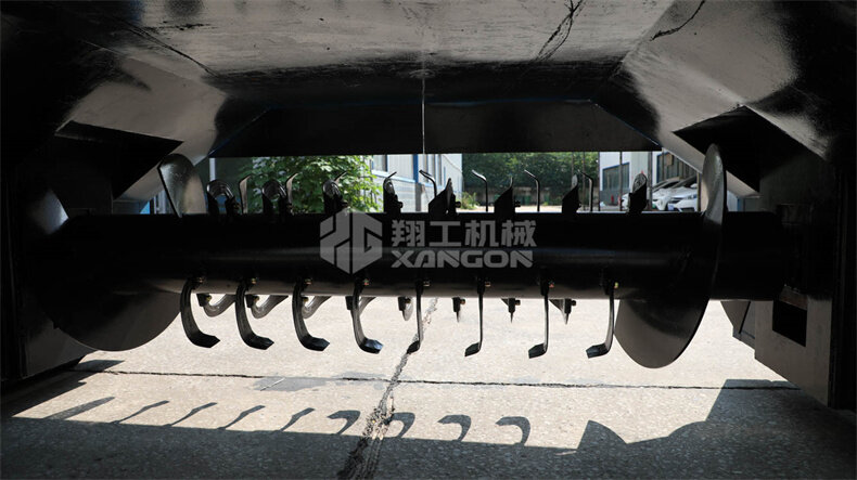 11. 翻拋能力強(qiáng),翻拋滾筒由左右兩段反向螺旋和中間直段拋齒組成,旋轉(zhuǎn)的螺旋滾筒將三角形條垛物料向中間收攏,同時隨著滾筒旋轉(zhuǎn)使物料向后翻拋,從而實現(xiàn)頂層物料和內(nèi)部物料充分混合。