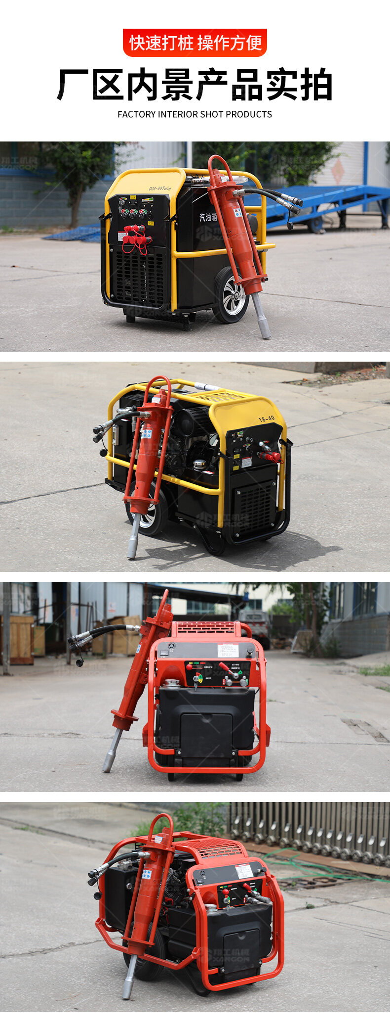 手持液壓打樁機+液壓動力站——高效靈活的打樁解決方案。采用液壓驅(qū)動,沖擊力強、振動小,適用于建筑地基、圍欄安裝、園林工程等場景。搭配液壓動力站,動力強勁,操作便捷,可長時間連續(xù)作業(yè)。體積小、重量輕,適合狹小空間施工,是工程打樁的理想工具。