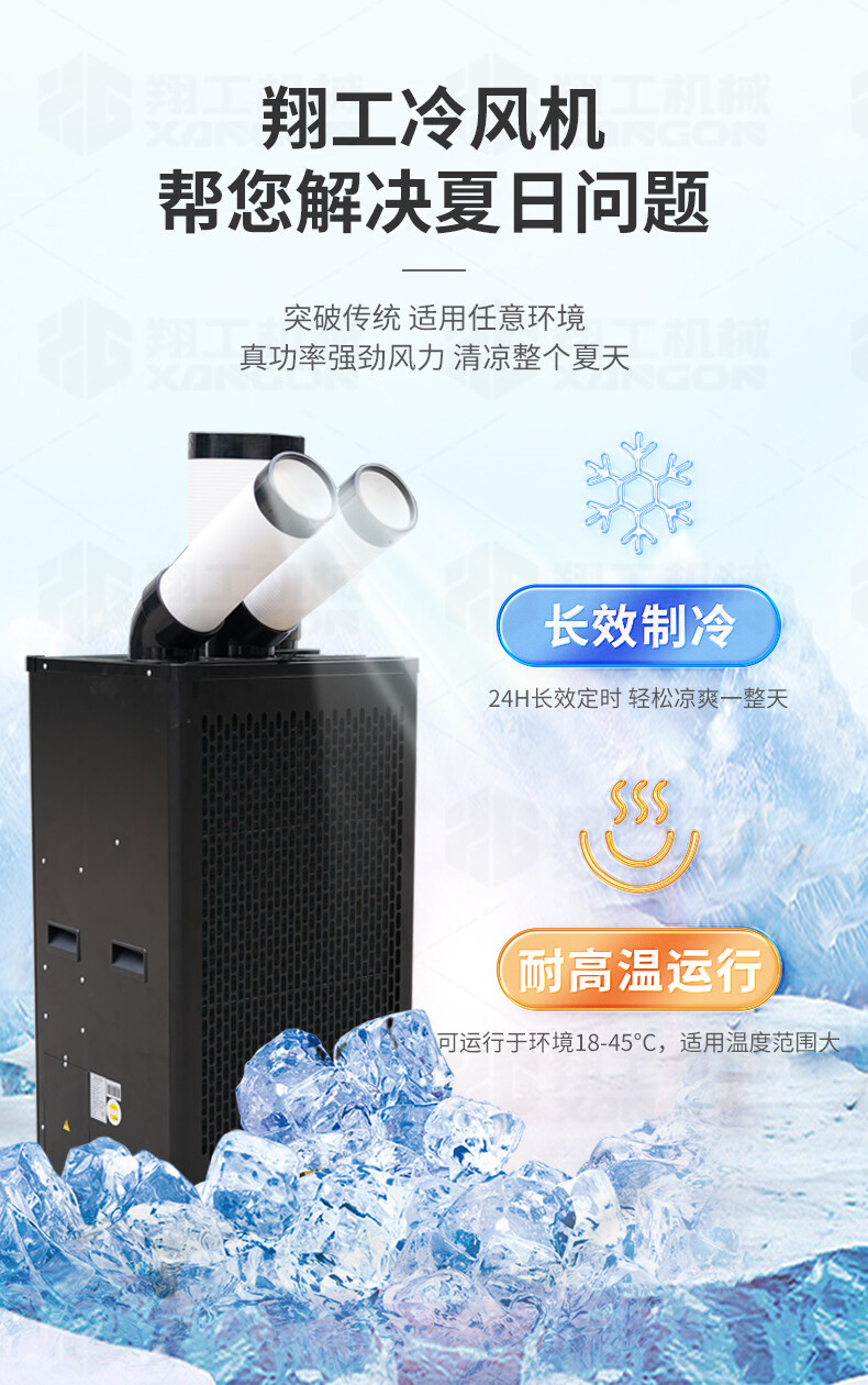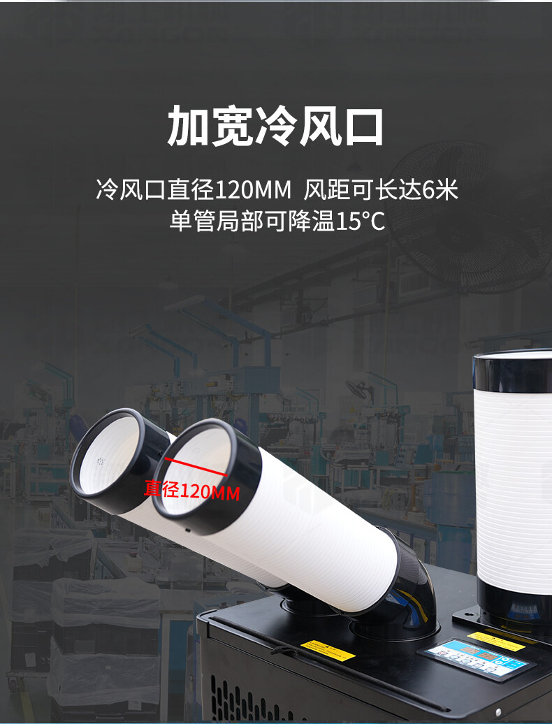 適應(yīng)各種大面積場所快速降溫:辦公場所降溫 汽車維修降溫 車間制冷 室內(nèi)制冷 集裝箱制冷 線上降溫 廚房降溫 車間崗位降溫