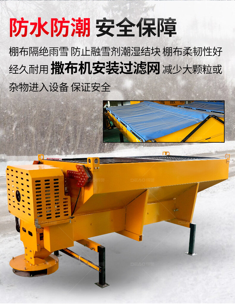 融雪劑撒布機(jī)是車載式撒布機(jī),適用于冰雪路面防滑沙料和融雪劑的撒布,是市政公路、高速公路的融雪撒布的便利設(shè)備。