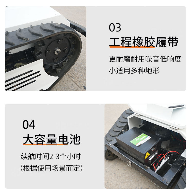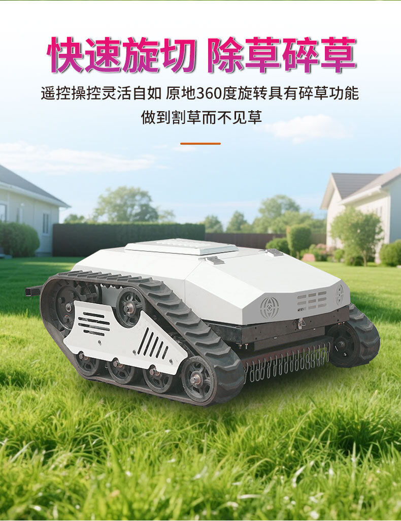 智能遙控履帶割草機采用鋰電池驅(qū)動,節(jié)能環(huán)保,續(xù)航持久;履帶式底盤設(shè)計,輕松應(yīng)對復(fù)雜地形,爬坡越障能力強。配備智能遙控系統(tǒng),操作簡單便捷,可遠距離精準控制。高效割草,低噪運行,適用于庭院、公園及專業(yè)草坪養(yǎng)護,是現(xiàn)代化園林管理的理想助手。