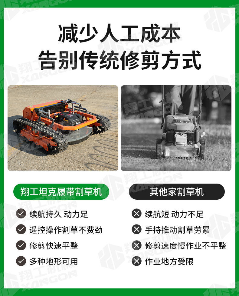 這是一款顛覆傳統(tǒng)的遙控坦克割草機(jī)。它采用堅(jiān)固的履帶底盤,輕松征服陡坡、濕滑草地等復(fù)雜地形。無(wú)線遙控操作,讓您遠(yuǎn)離烈日與噪音,在樹蔭下即可精準(zhǔn)完成修剪。動(dòng)力強(qiáng)勁,效率遠(yuǎn)超傳統(tǒng)手推式,是打理大型或不平整土地的理想智能工具。