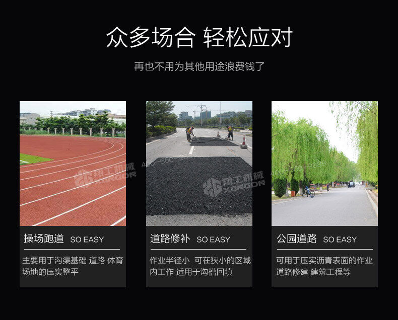1. 作業(yè)半徑小, 可在狹小的區(qū)域內工作,適用于溝槽回填;