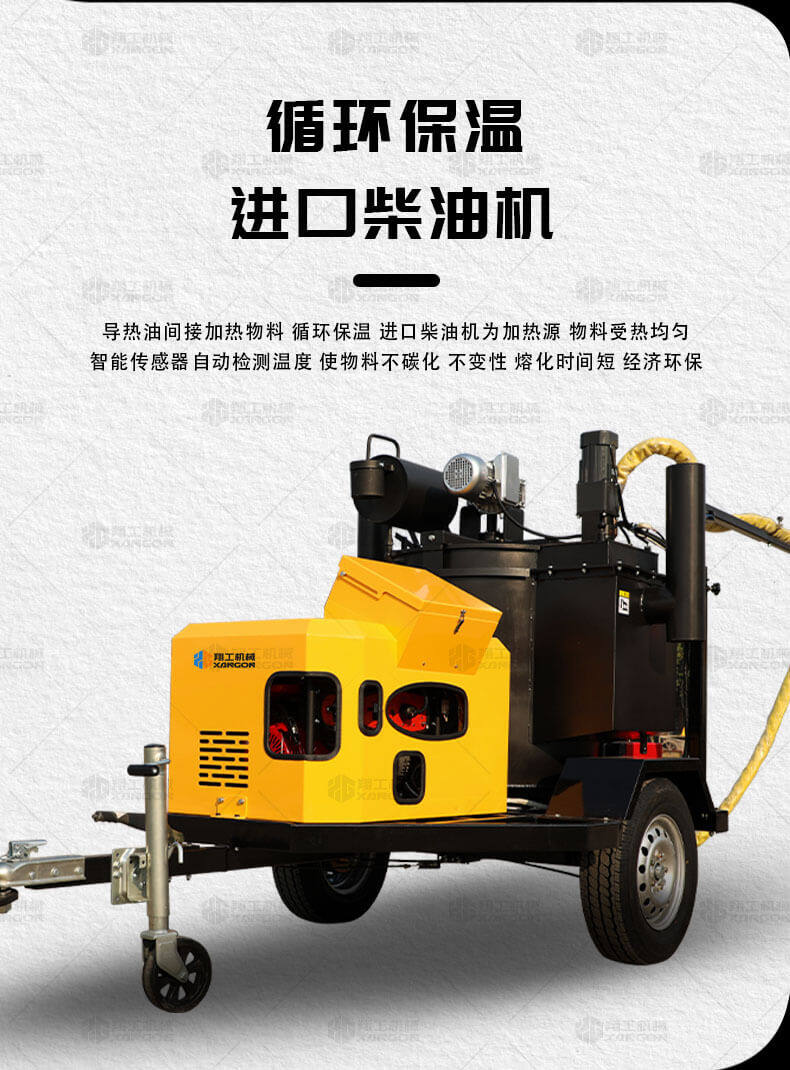 XGF-200瀝青灌縫機(jī)使用原料為瀝青灌縫膠,主要用于瀝青路面不規(guī)則裂縫、混凝土路面、橋梁伸縮縫、上下水道、煤氣管埋設(shè)機(jī)鋪裝路面的連結(jié)處防水處理,是翔工機(jī)械專門設(shè)計(jì)、生產(chǎn)的瀝青補(bǔ)灌縫機(jī)械。