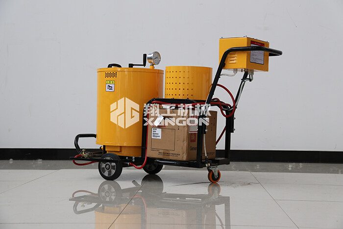 翔工60L手扶瀝青灌縫機(jī)采用液化氣加熱系統(tǒng),導(dǎo)熱油循環(huán),使瀝青或灌縫膠快速融化,通過瀝青泵的壓力由出料口出料而達(dá)到裂縫處理的效果。通過壓力注射式灌縫,使材料和縫壁緊密結(jié)合,轉(zhuǎn)向靈活的萬向輪追蹤裂縫,使灌縫效果美觀。由于灌縫材料使用瀝青或灌縫膠,在溫度較低時(shí)容易凝固,灌縫機(jī)配有發(fā)電機(jī)組提供整機(jī)動(dòng)力,灌縫機(jī)在出料管部位采用恒溫控制系統(tǒng),避免材料燒焦老化,保證出料的順暢。