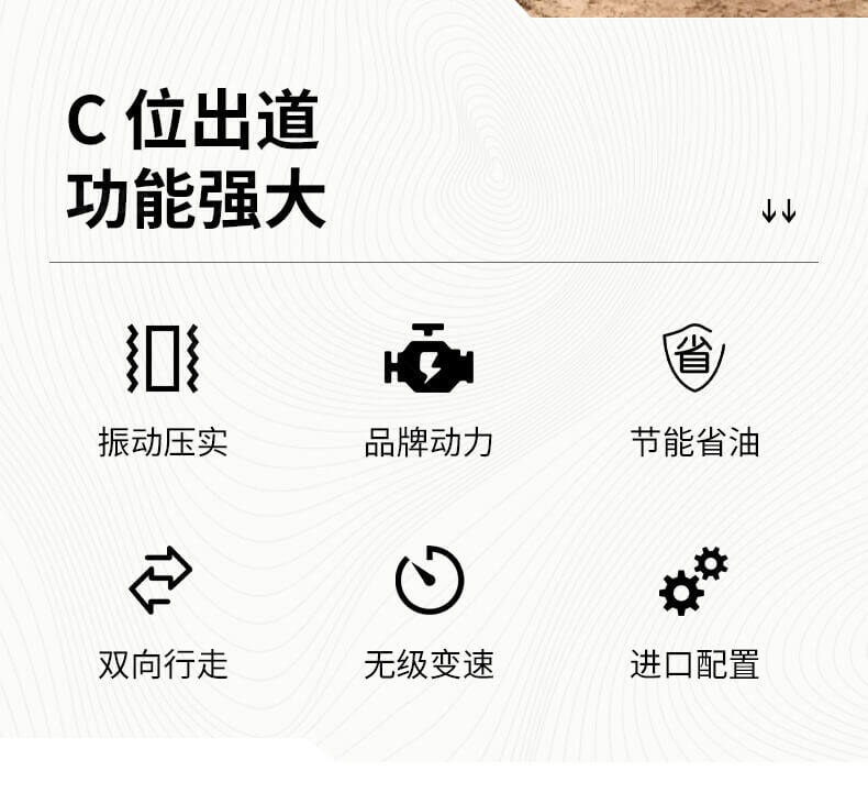 采用進口液壓系統(tǒng),雙驅雙振,前后輪可單獨調節(jié)振動,亦可同時振動。液壓轉向,液壓驅動,液壓行走,液壓振動。進口英國鉑金斯柴油機三缸水冷四沖程,動力強勁,性能穩(wěn)定。超快速度一小時可達12千米,無極變速。壓土,碎石,壓瀝青,壓回填土效果超乎想象。