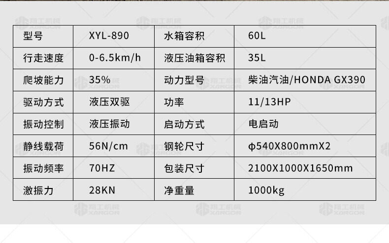 XYL-890壓路機采用風冷柴油發(fā)動機 進口變量柱塞泵 進口馬達,液壓振動 進口馬達雙驅動 液壓轉向 灑水控制開關 豪華座椅 LED燈