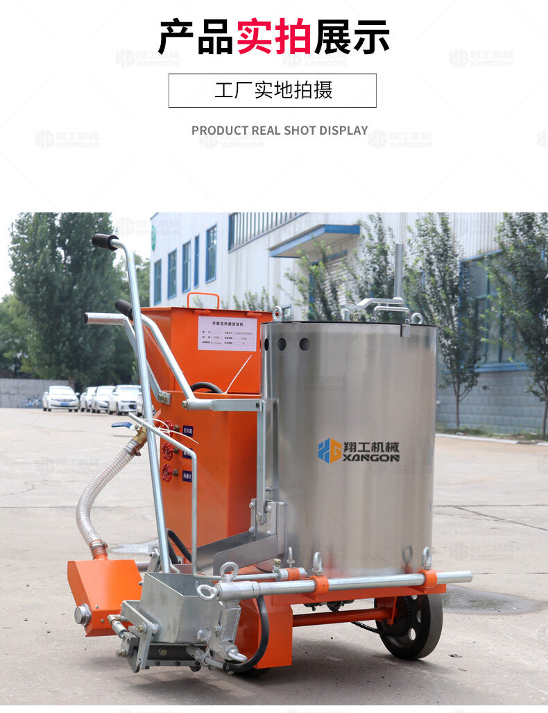 160手推熱熔劃線機(jī)采用普通鑄鐵劃線斗,同步離合玻璃微珠自動(dòng)撒播器,具有結(jié)構(gòu)簡單、輕便、價(jià)優(yōu)、性能優(yōu)良等特點(diǎn)。