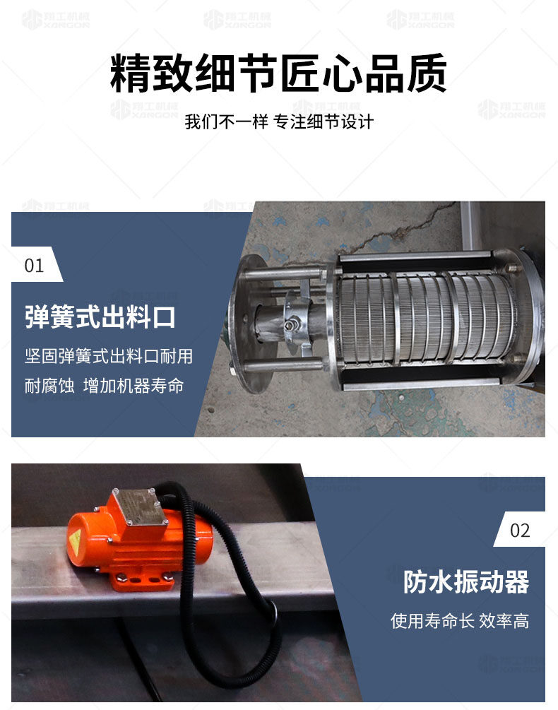 斜篩式固液分離機(jī)是一款針對(duì)含固率較小,含水率較大的污水、糞水、沼液等進(jìn)行大規(guī)模固液分離的設(shè)備。其設(shè)備外殼采用全不銹鋼打造,圓筒濾網(wǎng)則采用尼龍材質(zhì)制成——耐腐蝕性強(qiáng)。