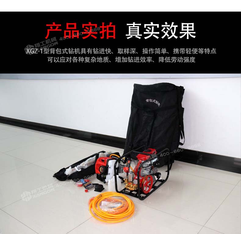 XGZ-1型背包式鉆機(jī)具有鉆進(jìn)快、取樣深、操作簡(jiǎn)單、攜帶輕便等特點(diǎn),可以應(yīng)對(duì)各種復(fù)雜地質(zhì)、增加鉆進(jìn)效率、降低勞動(dòng)強(qiáng)度,適用于高山、野外等交通不便的地形、勘探、石油勘測(cè)、礦物考察、建筑取樣、爆裂鉆孔等工作,可以卓效的替代中型巖芯鉆機(jī)的淺層巖芯取樣勘探工作。