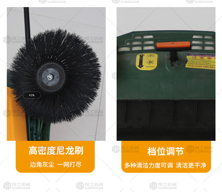 X920型全自動(dòng)手推式掃地機(jī)能清潔房屋周邊范圍:包括小路,公路,車(chē)道和院子,能比普通的掃把和簸箕節(jié)省5倍的時(shí)間,清掃時(shí)垃圾被迅速的收集到塵箱,簡(jiǎn)單、快速、干凈。