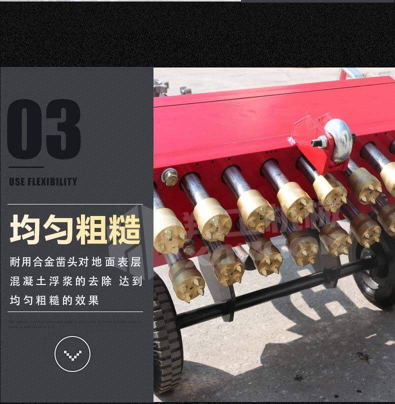 XG-P17A手推式地面鑿毛機(jī),主要為高速公路、高速鐵路的橋面、機(jī)場(chǎng)、橋梁、停車(chē)場(chǎng)等各種混凝土地面新建鋪裝時(shí)對(duì)地面表層混凝土浮漿的去除,達(dá)到均勻粗糙而設(shè)計(jì)的。對(duì)各種陳舊地面做翻新前的地坪處理;去除破損地面凸起部分;環(huán)氧樹(shù)脂地面鑿毛;地面做防滑面;對(duì)需二次鋪裝新舊面層打毛等具效率高的鑿毛工具。