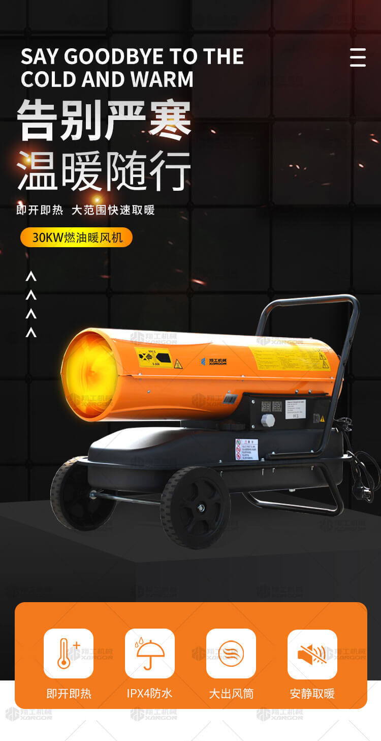 30KW燃油暖風機適用范圍: 工廠車間,物資倉庫,防潮烘干,局部采暖 建筑工地,道路橋梁,水泥養(yǎng)護,野外采暖 石油鉆井,煤炭礦區(qū),除冰防凍,設(shè)備保溫 鐵路機場,游艇船舶,油漆干燥等等。