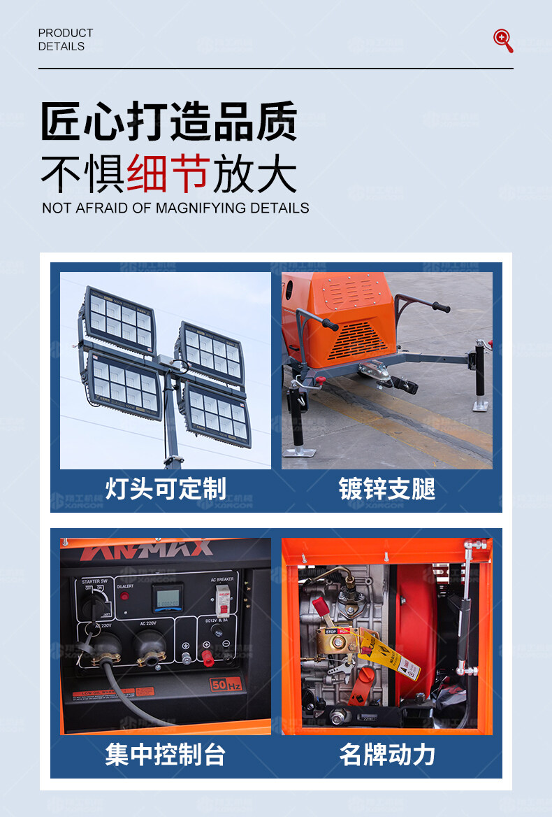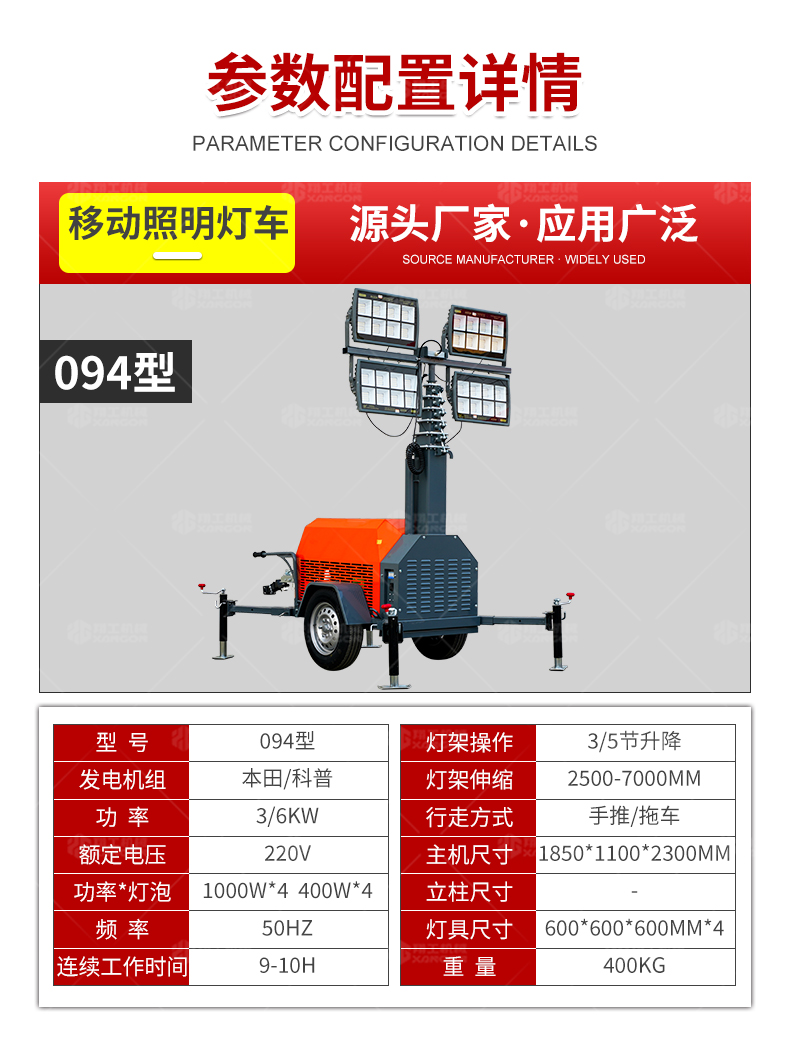 094移動(dòng)照明燈車采用高亮度LED光源,照明強(qiáng)度高、范圍廣,適用于夜間施工、搶險(xiǎn)救援等作業(yè)場(chǎng)景。配備液壓升降系統(tǒng),可自由調(diào)節(jié)燈架高度,實(shí)現(xiàn)360°全方位照明。移動(dòng)靈活,支持拖掛或自行走模式,適應(yīng)復(fù)雜地形。內(nèi)置大容量電池組,并可選配發(fā)電機(jī)供電,續(xù)航持久,是高效可靠的移動(dòng)照明解決方案。