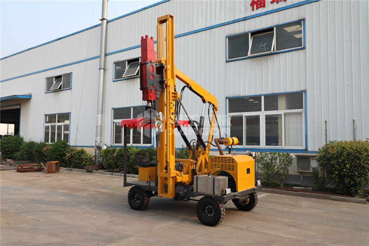 小四輪打樁機(jī)適用于公路護(hù)欄鉆孔、打樁、拔樁,其他各種場(chǎng)地打樁(農(nóng)場(chǎng)、園林、果園),公路野外工程施工。