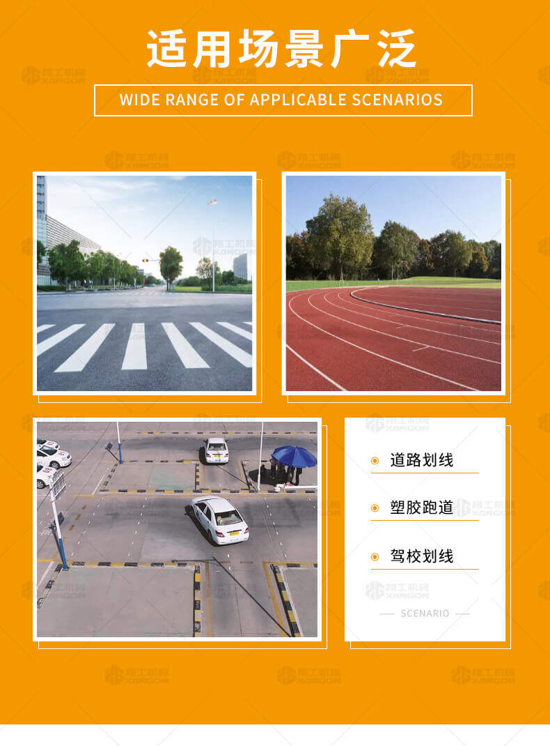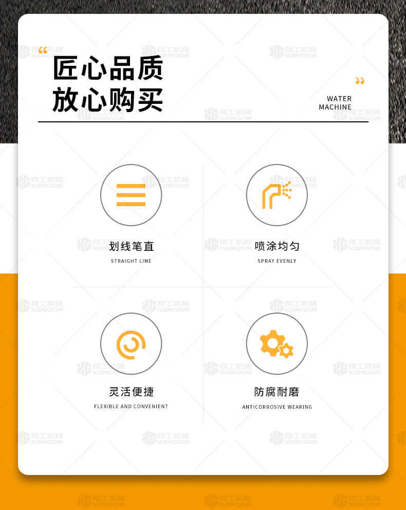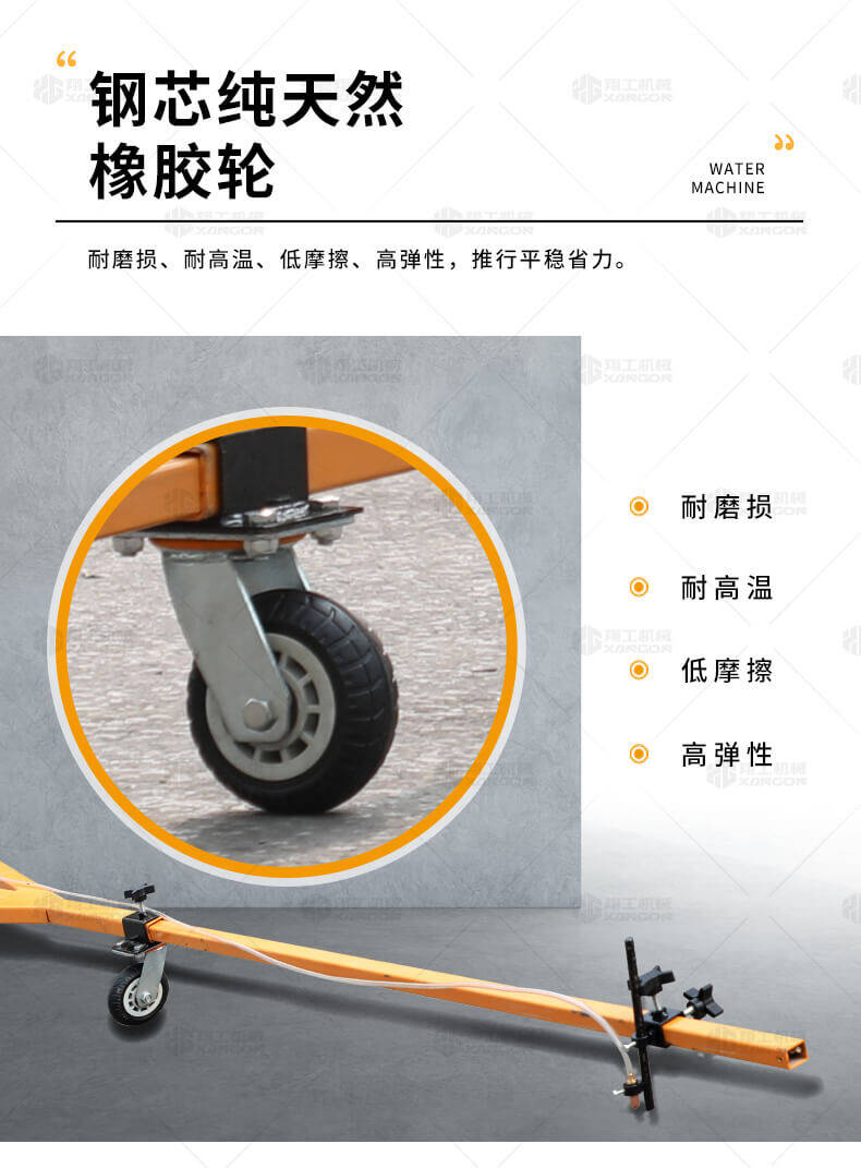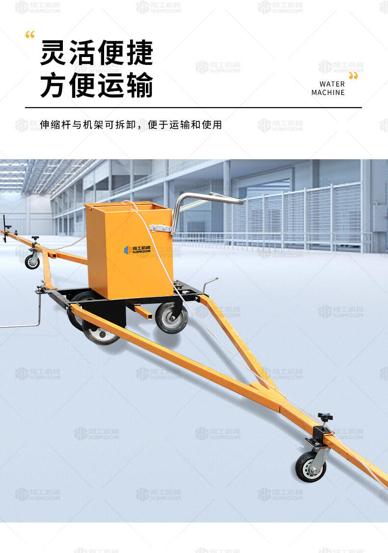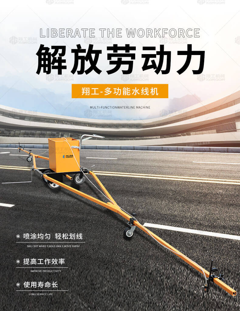 水線車是標線施工前序工作中施劃水線放樣的專用設備。 水線是標線施工前必不可少的工序,水線機可以替代大部分的手工放樣,降低勞動強度,提高工作效率,省時省力。 本產品可同時劃三條基準線(水線),可靈活調整水線間距;水線架和伸縮桿可折疊、拆卸,便宜運輸。 在施工前,在所要施劃標線的位置上需先涂劃水線,用以引導標線劃線機的施劃。