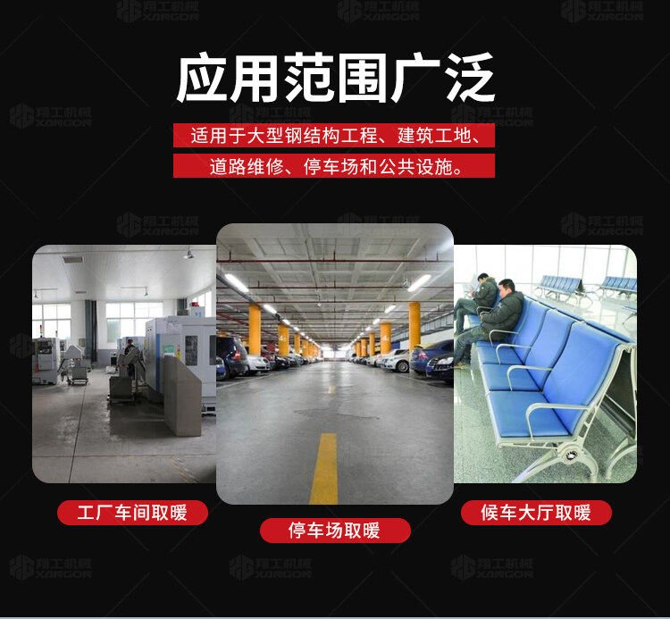 此款燃氣暖風(fēng)機適用于工廠車間、辦公室、酒店、酒吧、飯店、餐廳、大廳、展廳、咖啡店.天井、花園、步行街、站亭、運動館、步行街、大型會議室、別墅庭院及戶外休閑等空氣流通好的場所。