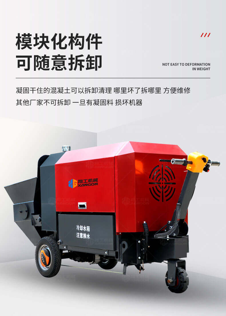 這款7.5KW型澆筑泵帶有自動攪拌功能,性能可靠,設備各個結(jié)構制造科學,電機功率大、性能穩(wěn)定、施工效率高等優(yōu)勢,使用電動澆筑泵大大提高了施工效率,降低勞動強度,節(jié)約人工,被廣泛應用。是工程施工的好幫手。