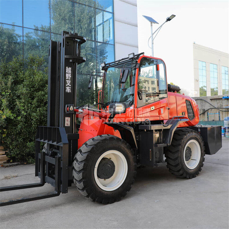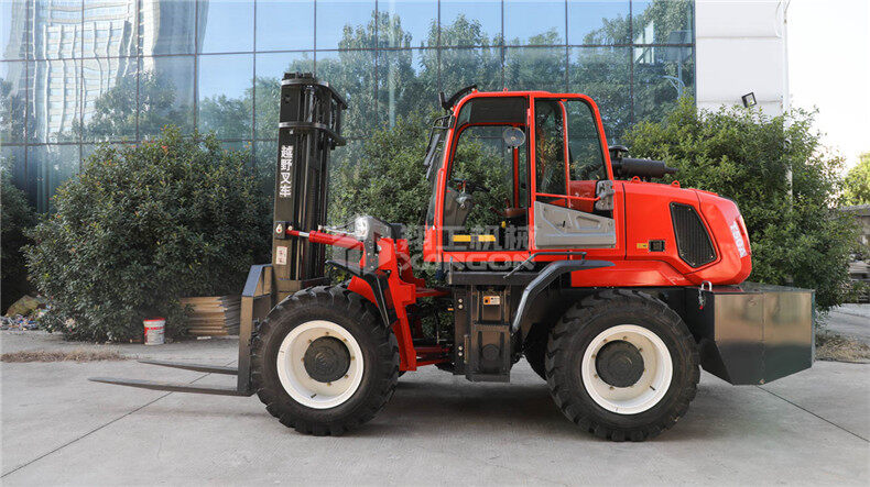 5.越野叉車發(fā)動機功率大,采用全輪驅動和越野輪胎。