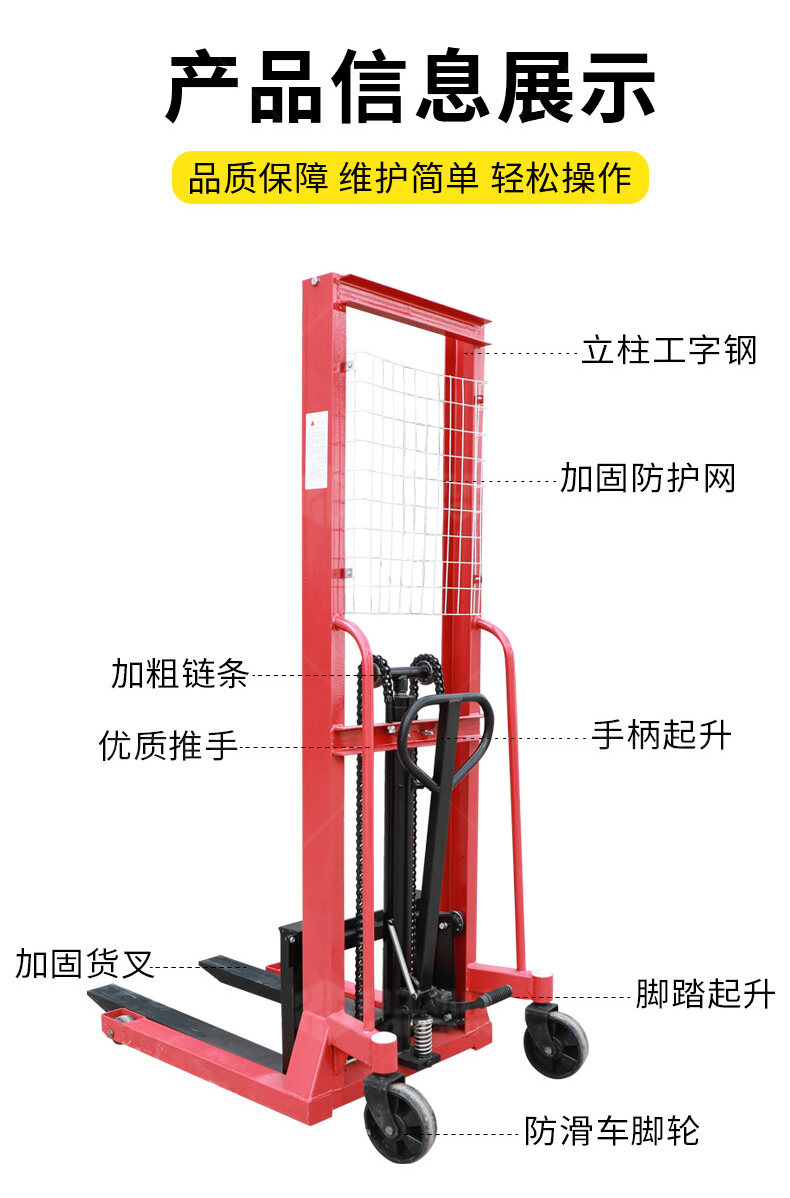 手推液壓堆高車滿足多場(chǎng)景需要工廠車間高架倉(cāng)庫(kù)、商場(chǎng)超巿、港口車站、配送中心、物流中心等......