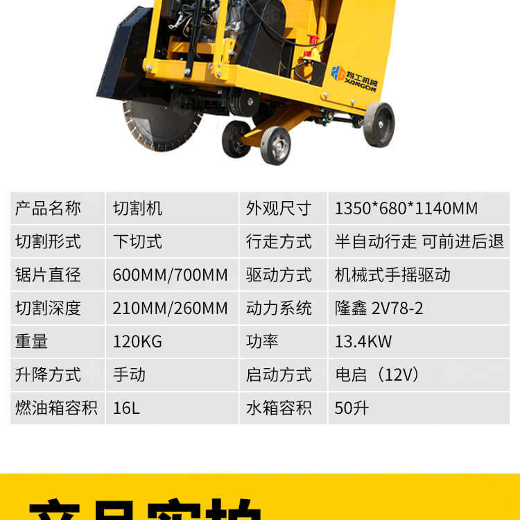 大鋸片大直經(jīng)馬路切割機自帶水源,降塵降溫,刀片使用壽命長。
