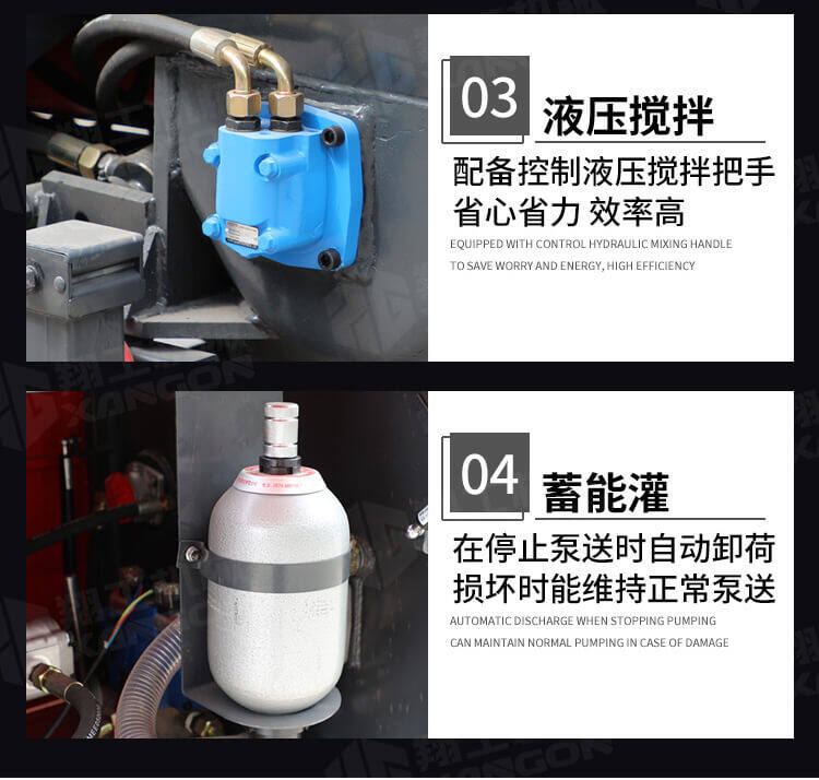 采用獨(dú)創(chuàng)的泵車尾輪驅(qū)動(dòng)系統(tǒng)輕松解決移動(dòng)時(shí)帶來的各種困難;采用雙排風(fēng)冷散熱系統(tǒng)散熱效果更好,液壓系統(tǒng)采用壓力更高,性能更穩(wěn)定的柱塞式自動(dòng)變量主油泵,采用先進(jìn)的三維立體壓模一體式自動(dòng)攪拌料斗可輸送機(jī)制砂,高標(biāo)號混凝土,有效緩解積料問題。