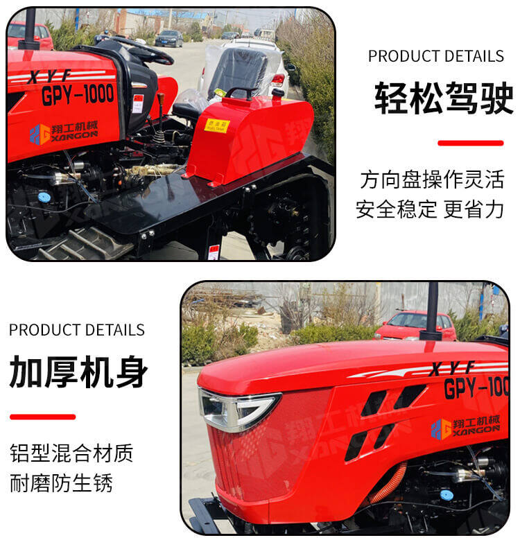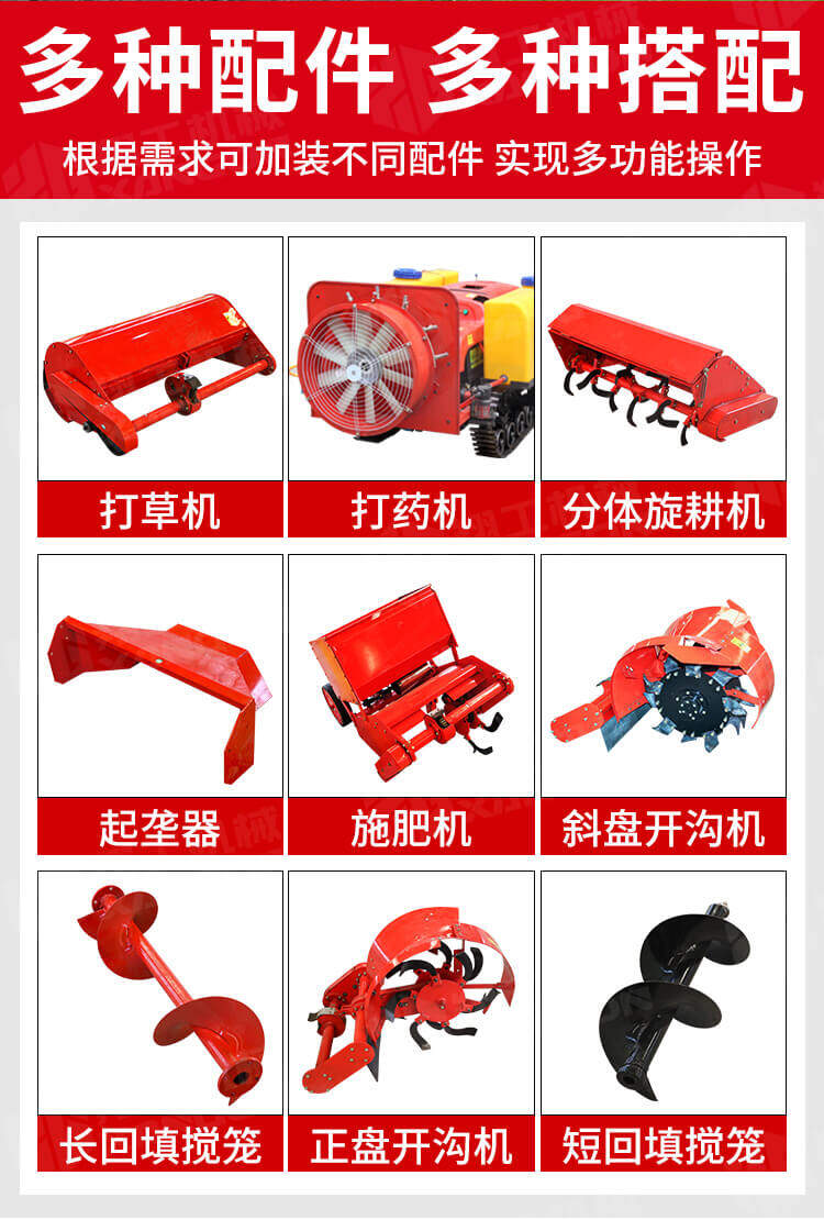 100馬力果園旋耕機液壓升降,爬坡能量強,專為復(fù)雜地形設(shè)計。橡膠履帶接地壓力小,附著力強,有效防止打滑,特別適用于水田、坡地及泥濘地塊。旋耕除草效果好,效率卓越,是規(guī)?;r(nóng)耕與高標(biāo)準(zhǔn)農(nóng)田建設(shè)的強勁動力。
