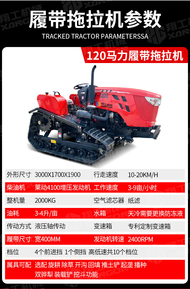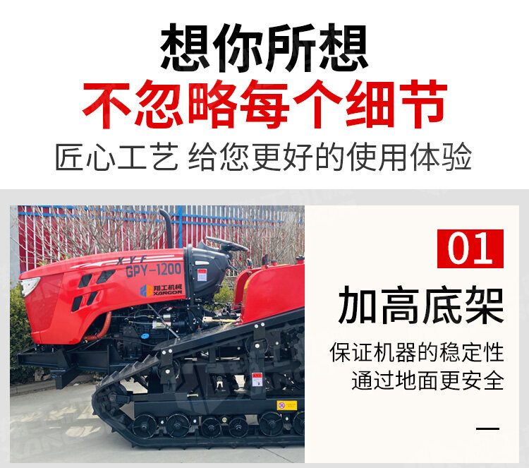 本款120馬力履帶旋耕機(jī),動(dòng)力強(qiáng)勁,作業(yè)高效。采用重型履帶底盤,接地壓力小,通過性與穩(wěn)定性極佳,輕松應(yīng)對(duì)水田、泥濘等復(fù)雜工況。其深耕效果好,碎土率高,能一次性完成旋耕、碎土作業(yè),是規(guī)?;r(nóng)田耕整地的理想選擇。