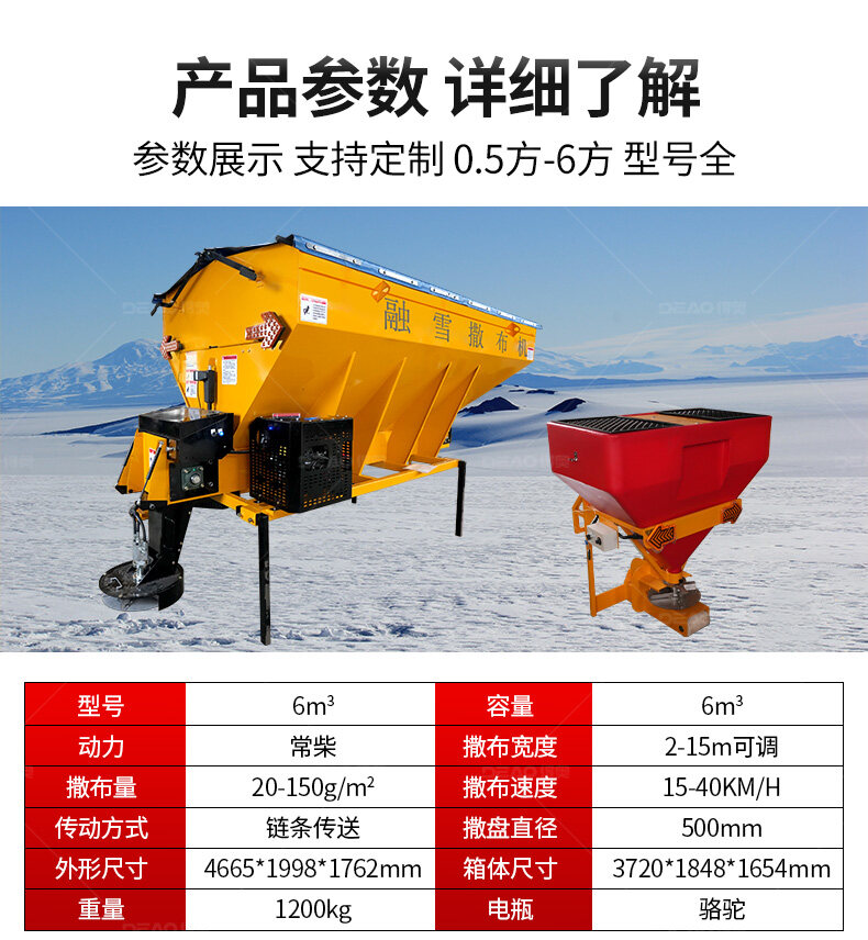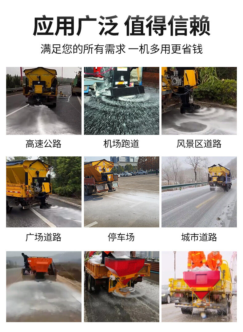 融雪劑撒布機(jī)是車載式撒布機(jī),適用于冰雪路面防滑沙料和融雪劑的撒布,是市政公路、高速公路的融雪撒布的便利設(shè)備。