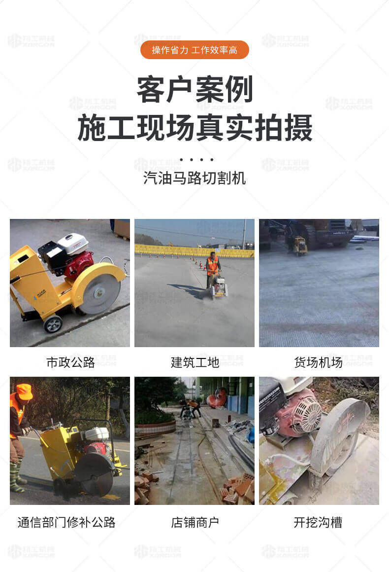 用于公路、市政、建筑、煤氣、通信部門修補(bǔ)公路或開挖溝槽時進(jìn)行路面切割。相對于電動或柴油動力的路面切割機(jī),操作輕巧省力,運(yùn)輸方便,工作效率高。